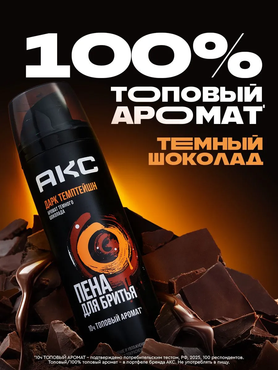 УНИКАЛЬНЫЙ АРОМАТ ПАРФЮМАИспользуй пену для бритья Акс Дарк Темптейшн и ощути на своей коже стойкий до 10 часов' топовый* аромат темного шоколада для твоего настроения и уверенности в себе на весь день!