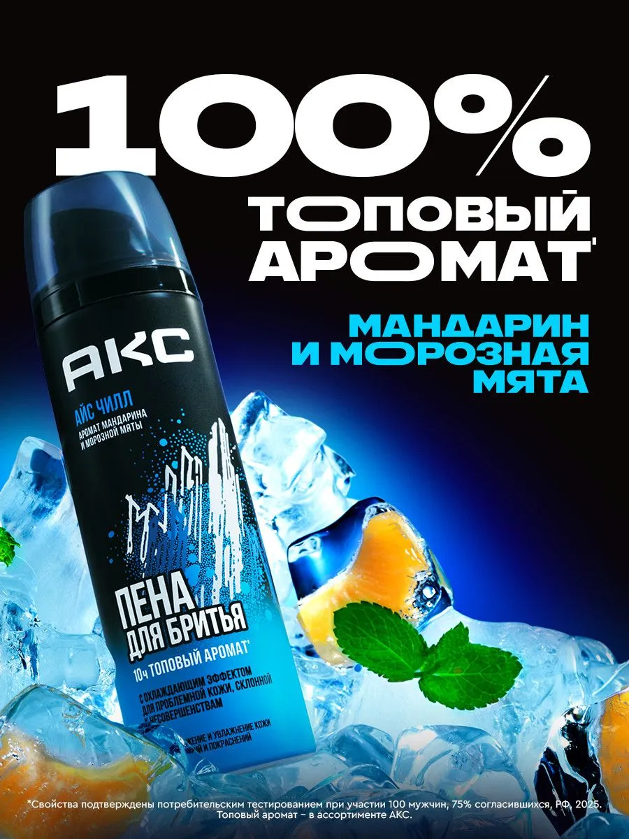 УНИКАЛЬНЫЙ АРОМАТ ПАРФЮМА. Используй пену для бритья Акс Айс Чилл и ощути на своей коже топовый* аромат сочного мандарина и морозной мяты для твоего настроения на весь день!