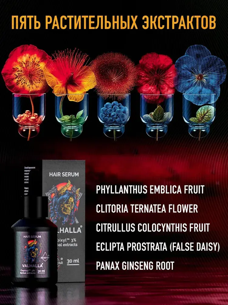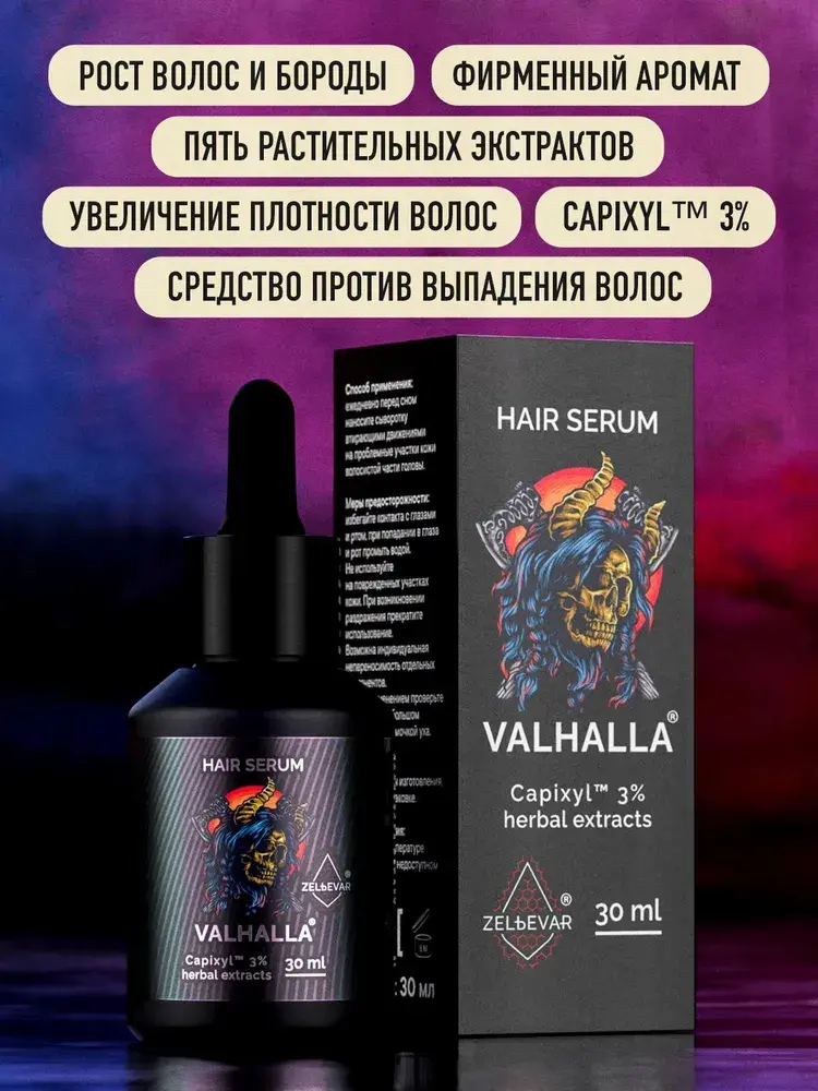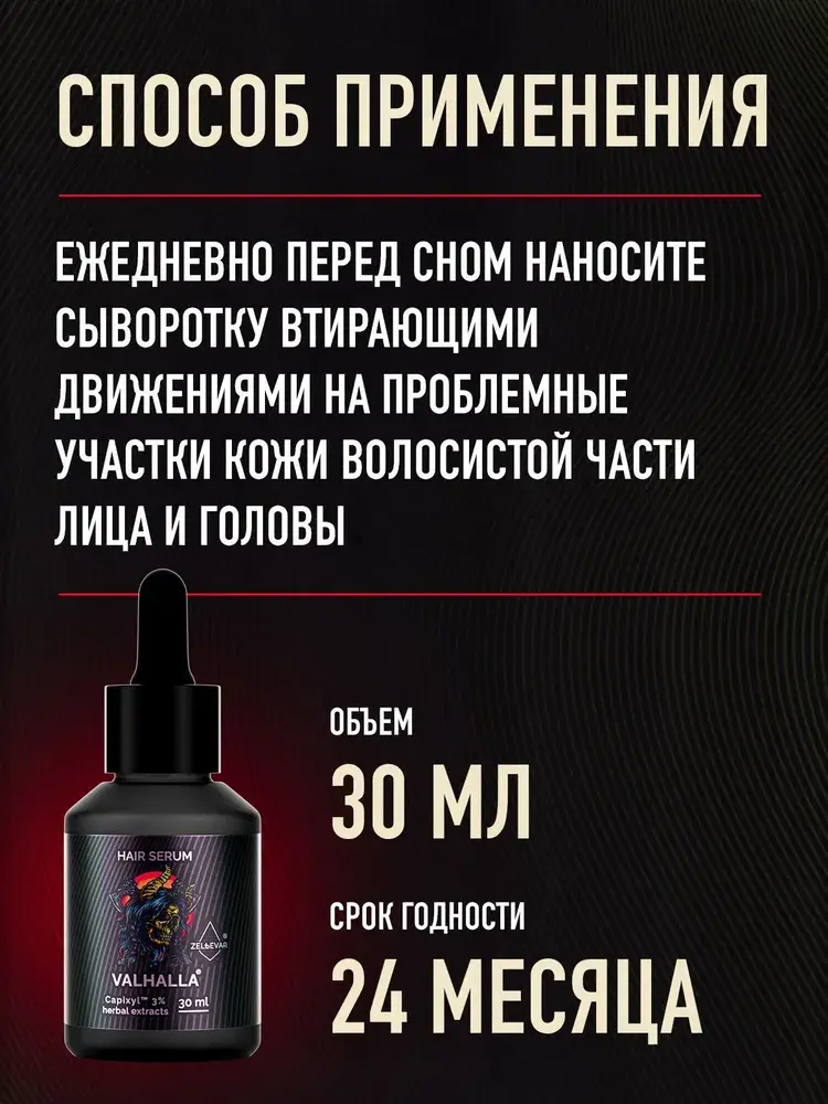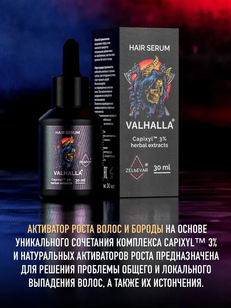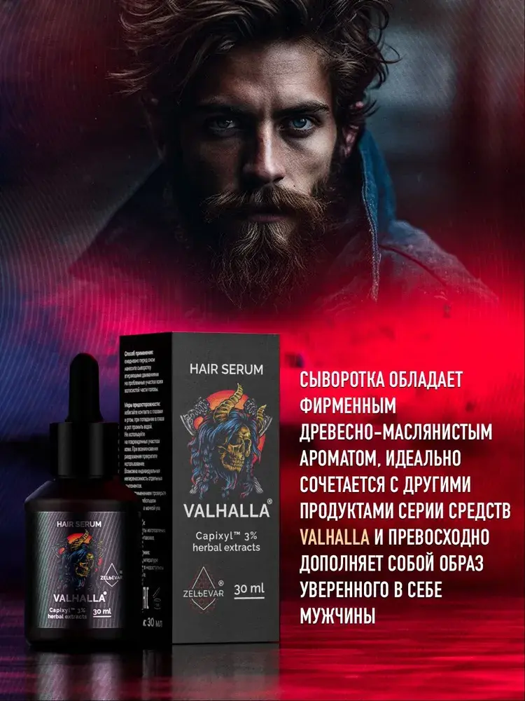 Средство для роста волос обладает фирменным древесно-маслянистым ароматом, идеально сочетается с другими продуктами серии средств "VALHALLA" и превосходно дополняет собой образ уверенного в себе мужчины.