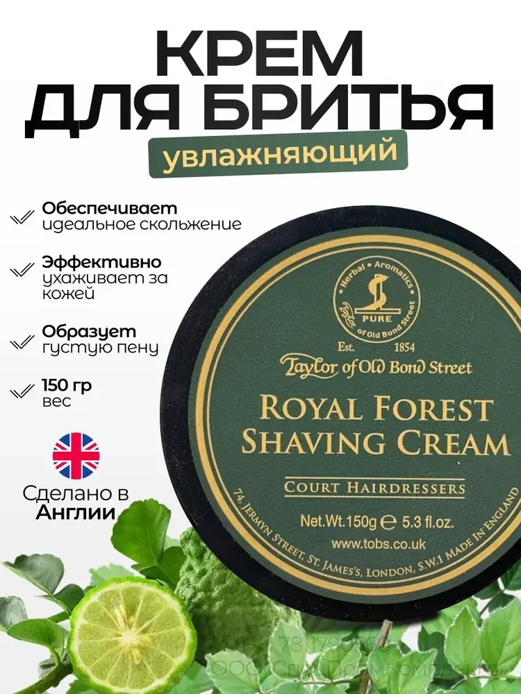Крем для бритья Taylor of Old Bond Street серии Royal Forest подходит для чувствительной кожи, имеет свежий фужерный аромат.