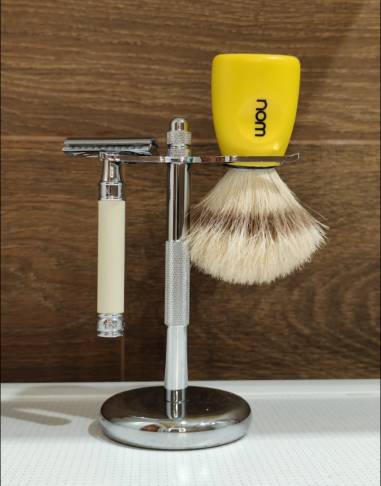 Для тех, кто ищет идеального сцепления бритвы, даже с влажной рукой. Резиновое покрытие на рукоятке бритвы изготовлено в элегантном цвете слоновой кости. Классическая бритва на лезвия с закрытым гребнем высокого качества.