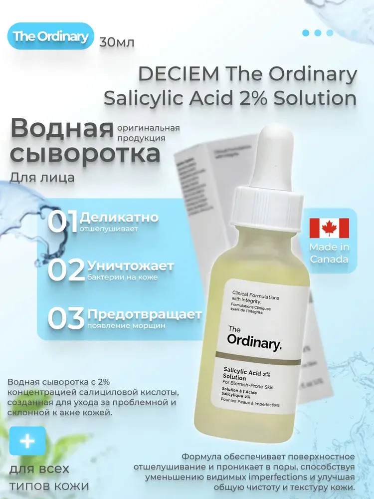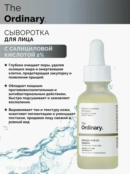 - Наносите The Ordinary Salicylic Acid 2% Solution Serum с салициловой кислотой один раз в день, вечером, после очищения и перед нанесением увлажняющих сывороток, масел и кремов. Нанесите очень небольшое количество на проблемную зону или распределите необходимое количество по всему лицу. Избегайте контура глаз и зрительного контакта.